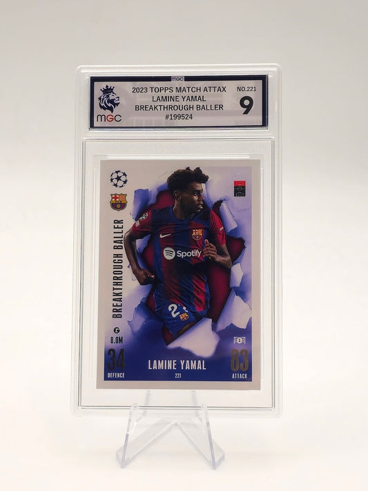 Lamine Yamal Breakthrough Baller Card #221 - 2023 Topps Match Attax FC Barcelona MGC 9 Graded