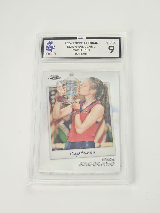 EMMA RADUCANU 2024 TOPPS CHROME TENNIS - Captured Insert Silver Holo Refractor #CTD-EM (Graded Card, MGC9)